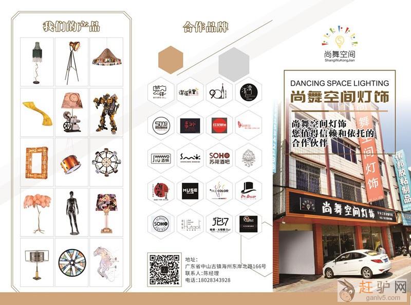 中山市尚舞空间灯饰有限公司是一家专业从事非标定制灯具设计,生产的厂商,坐落于灯都中山古镇,工厂占地两千多平方米,拥有自己的五金车间,装配车间,专业的工程设计团队及安装团队,我们的产品曾经登上捷克,俄罗斯杂志,受到国外友人高度赞赏!客户主要以各个设计师,设计公司为主,服务于多个全国一线酒店,酒吧,餐吧等等连锁品牌。自公司成立以来秉承服务至上,质量第一的原则在灯饰行业和设计师圈子里赢得良好的口碑和占领了一席之地,我们的口号是:服务一个客户,交到一个朋友,把每个项目都当成标杆对待,希望与您精诚合作!www.ganlv5.com